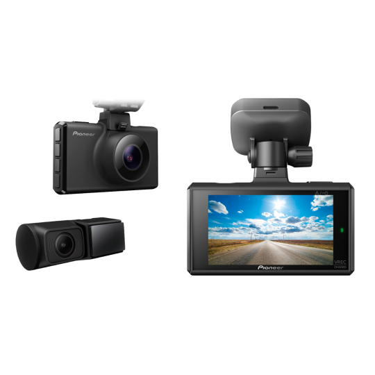 Deze Pioneer is een prestatiegerichte WQHD-dashcamera met twee kanalen, met een naar voren gerichte 135°camera met een 3-inch LCD-scherm dat rechtstreeks op de binnenkant van de voorruit kan worden bevestigd, en een compacte naar achter gerichte camera die op de achterruit wordt bevestigd.